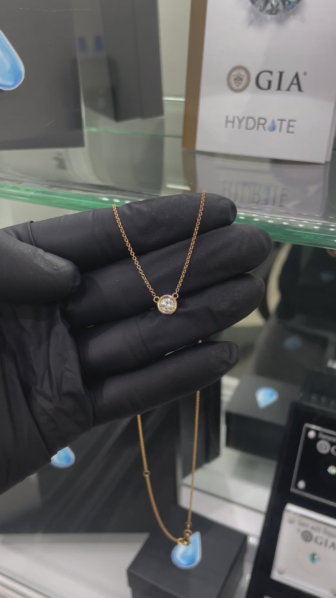 Round Brilliant Bezel Set Diamond Solitaire Necklace - 18K Yellow Gold (1/3ct)