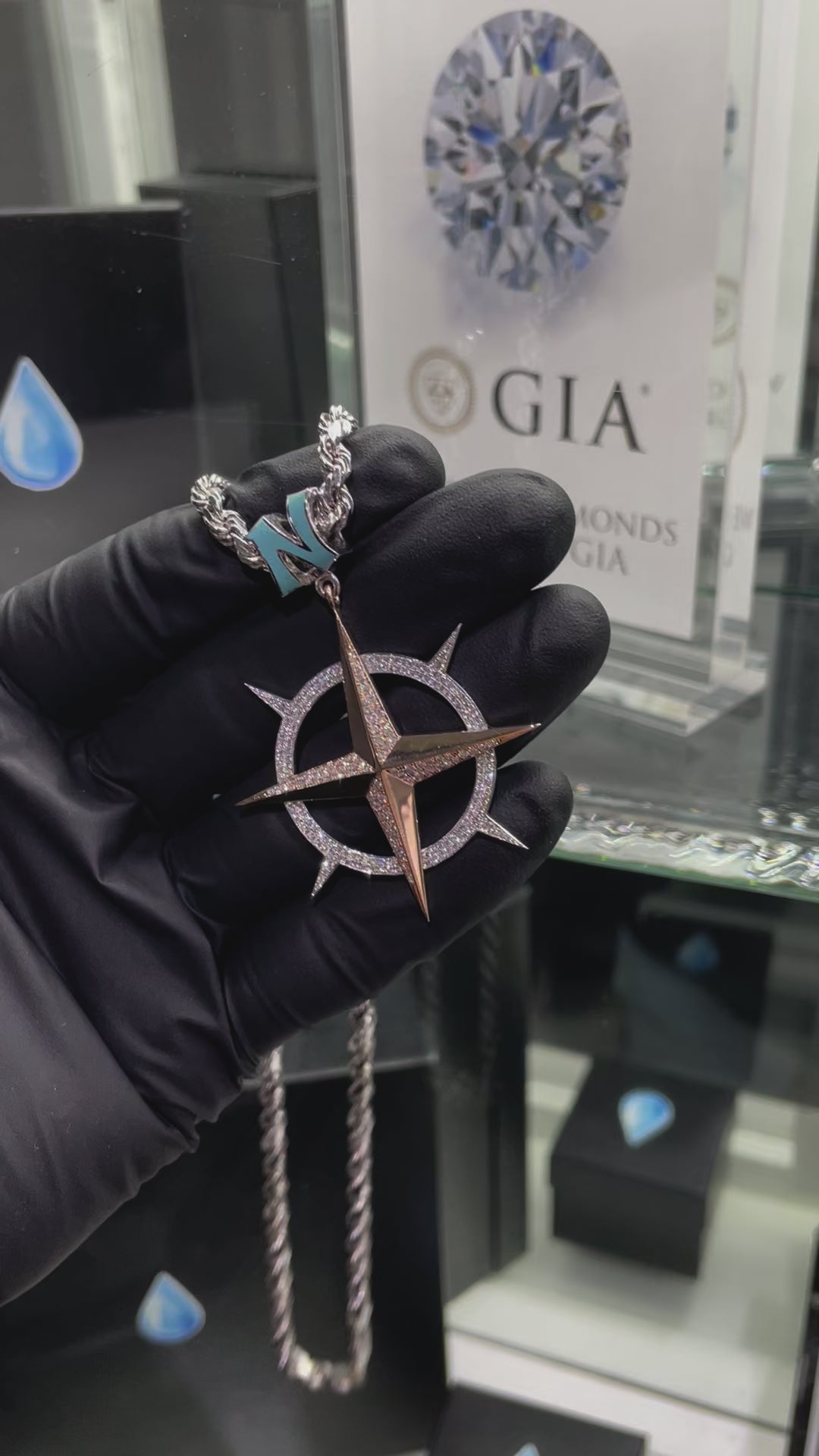 Custom Design Deposit - Two-Tone "North" Compass Natural Diamond Enameled Pendant